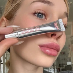 GLOW ON, GIRL is a pink shade with delicate shimmer that can be layered from a sheer tint to a more vibrant color. It has a sweet yet gentle dessert-like scent of berry pastry.